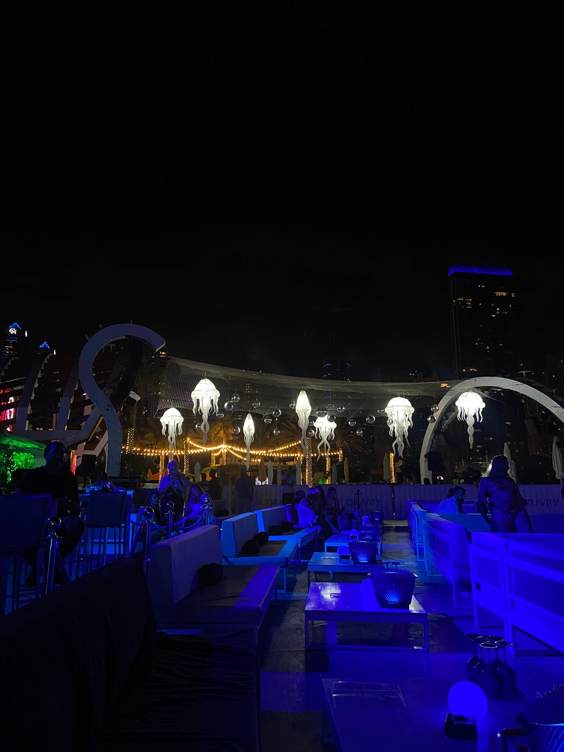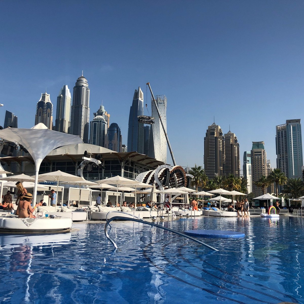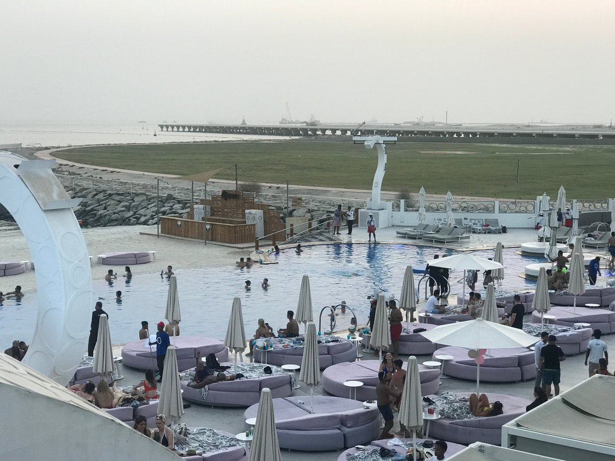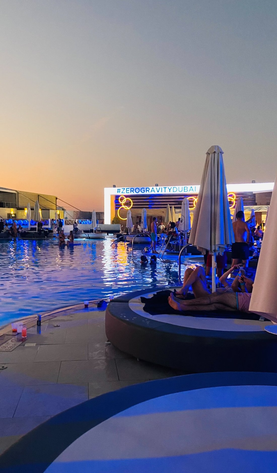 Right next to the drop zone of Skydive Dubai you find the exclusive beach club, bar and restaurant Zero Gravity. With the Marina skyline and The Palm in the background you can relax on the private beach, enjoy the sunset over a shisha and a refreshing drink in Zero Gravity’s garden area, have a meal or party all night long.