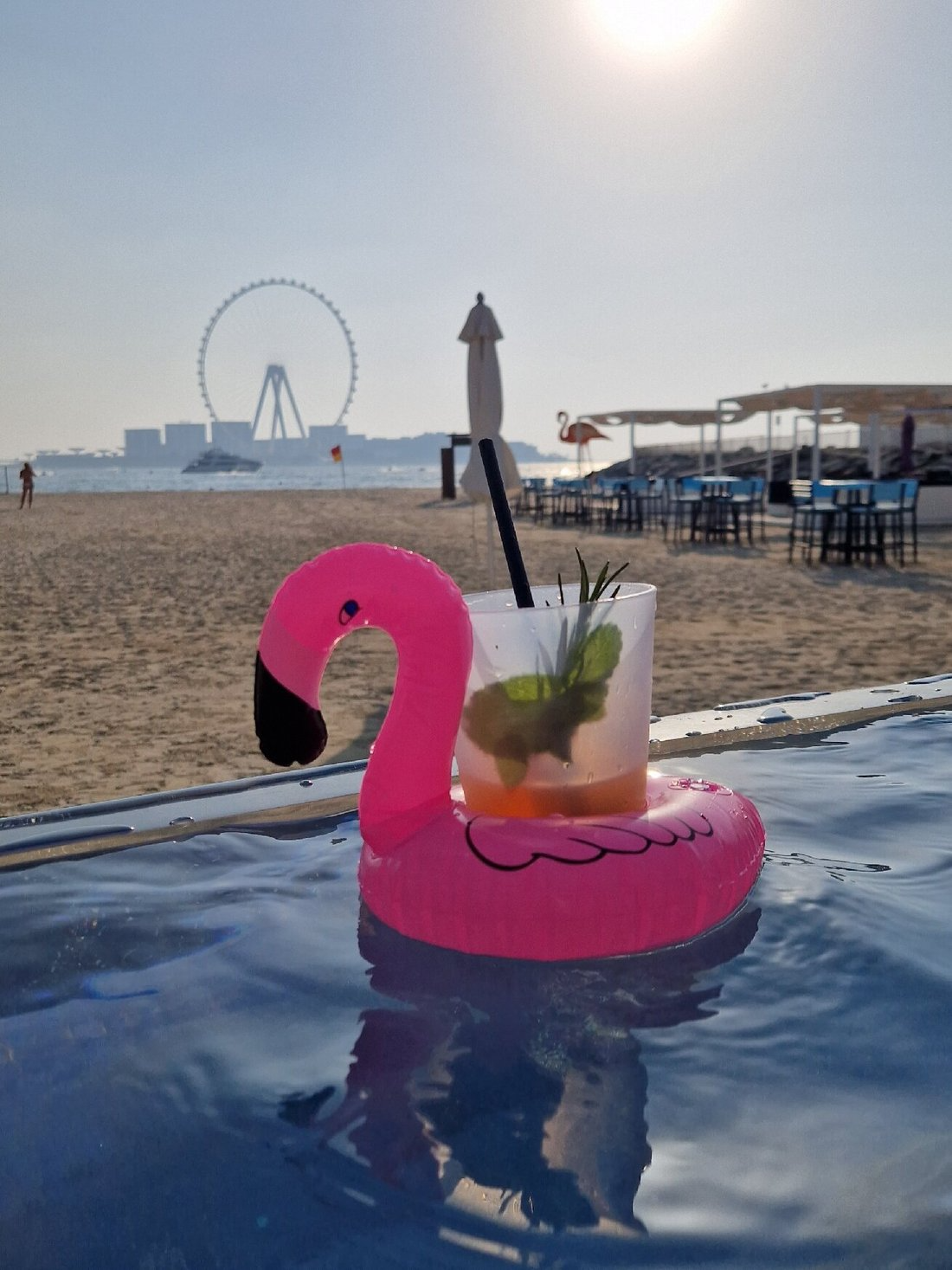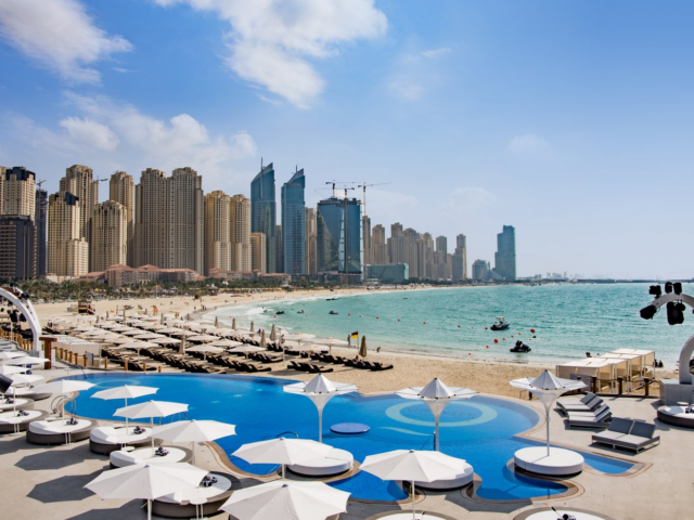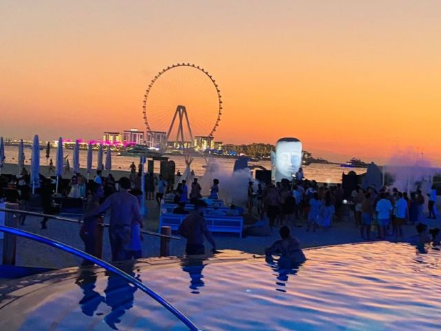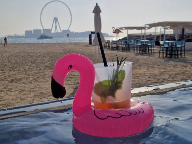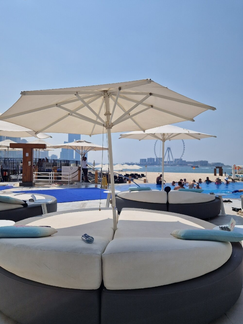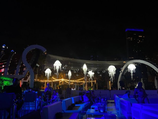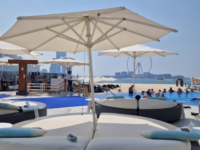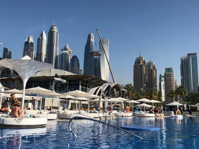 Right next to the drop zone of Skydive Dubai you find the exclusive beach club, bar and restaurant Zero Gravity. With the Marina skyline and The Palm in the background you can relax on the private beach, enjoy the sunset over a shisha and a refreshing drink in Zero Gravity’s garden area, have a meal or party all night long.